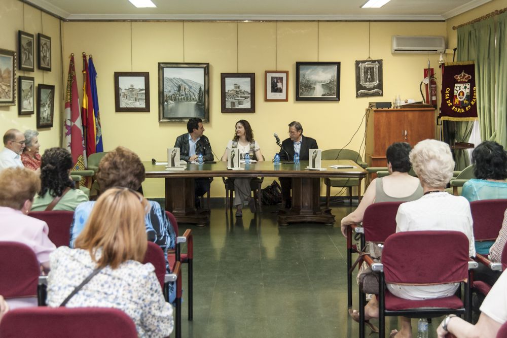 Alejandra Mateos, periodista de profesión, con siete años de ejercicio en Heraldo de Soria, fue introducida por el presidente de la Casa, José María Aceña y por el diputado soriano Félix Lavilla, quien resaltó el rigor informativo y la exigencia de datos que Alejandra recababa en los tiempos en los que ejerció su menester informativo en Soria. A continuación, la autora desgranó la arquitectura novelesca en la que el protagonista es Manuel, hijo de un barbero y enamorado de la niña Leonor, la cual, tras plantarlo en un lunes de Bailas, lo desplazaría en sus preferencias por aquel señor mayor y profesor del Instituto, que componía poemas y que había vivido en París. Partiendo de la ficción, Alejandra Mateos sitúa a Manuel como trabajador a las órdenes del investigador Adolf Schulten, alemán que había llegado a Soria a fin de sacar a la luz la ciudad celtíbera de Numancia.