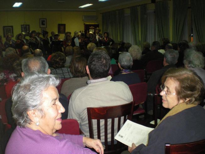 Con una asistencia numerosa de socios que colmaba la disponibilidad del salón de actos de la Casa, César, Marita, Charo, Antonio, Pablo, José Luis, Julio, Shreezade, y el resto del coro, nos deleitaron con composiciones de zarzuela, como la Parranda, La Rosa del Azafrán, Luisa Fernanda o La Revoltosa, amén de otras piezas de composiciones operísticas entre las que destacamos El Gato Montés o La Traviata.
