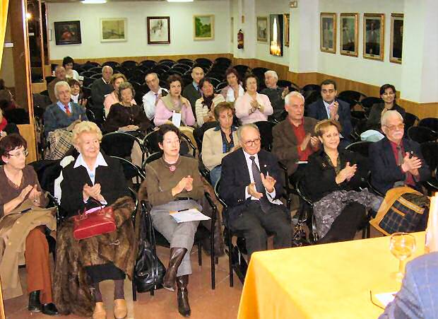 10 Mayo 2007 ACTO JUEVES EN LA CASA DE SORIA La Casa de Soria en Madrid celebró el jueves día 10 de mayo una intensa jornada en la que la cultura actuó como hilo conductor. A las 18.00 horas, el profesor D. José de las Heras, abrió el ciclo con una amena conferencia bajo el título ‘El medio ambiente y la vida cotidiana’. Una hora después, se procedió a la presentación del libro ‘Andar por las sierras de Urbión, Neilla y Cebollera’ del autor Julián Rodríguez Jimeno. Dicho acto, presentado por Esther Rodríguez, tuvo como invitado principal al autor de esta magnífica guía editada por la conocida Tienda Verde. Esta presentación fue dedicada a todos los sorianos en Madrid y Asociaciones de senderistas y personas amantes de las sierras y montes de Soria. Tras su finalización, todos los presentes degustaron un vino español. |