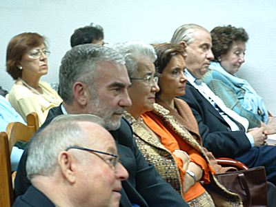14 Febrero 2007. Javier Muñoz, como coordinador del IV Congreso, en la reunión de las casas regionales del distrito Centro, celebrada en el Centro Asturiano de Madrid. Preside la concejala de distrito doña Elena Sánchez y directivos del Centro Asturiano. Asistieron representantes de diversas casas regionales en la capital de España.